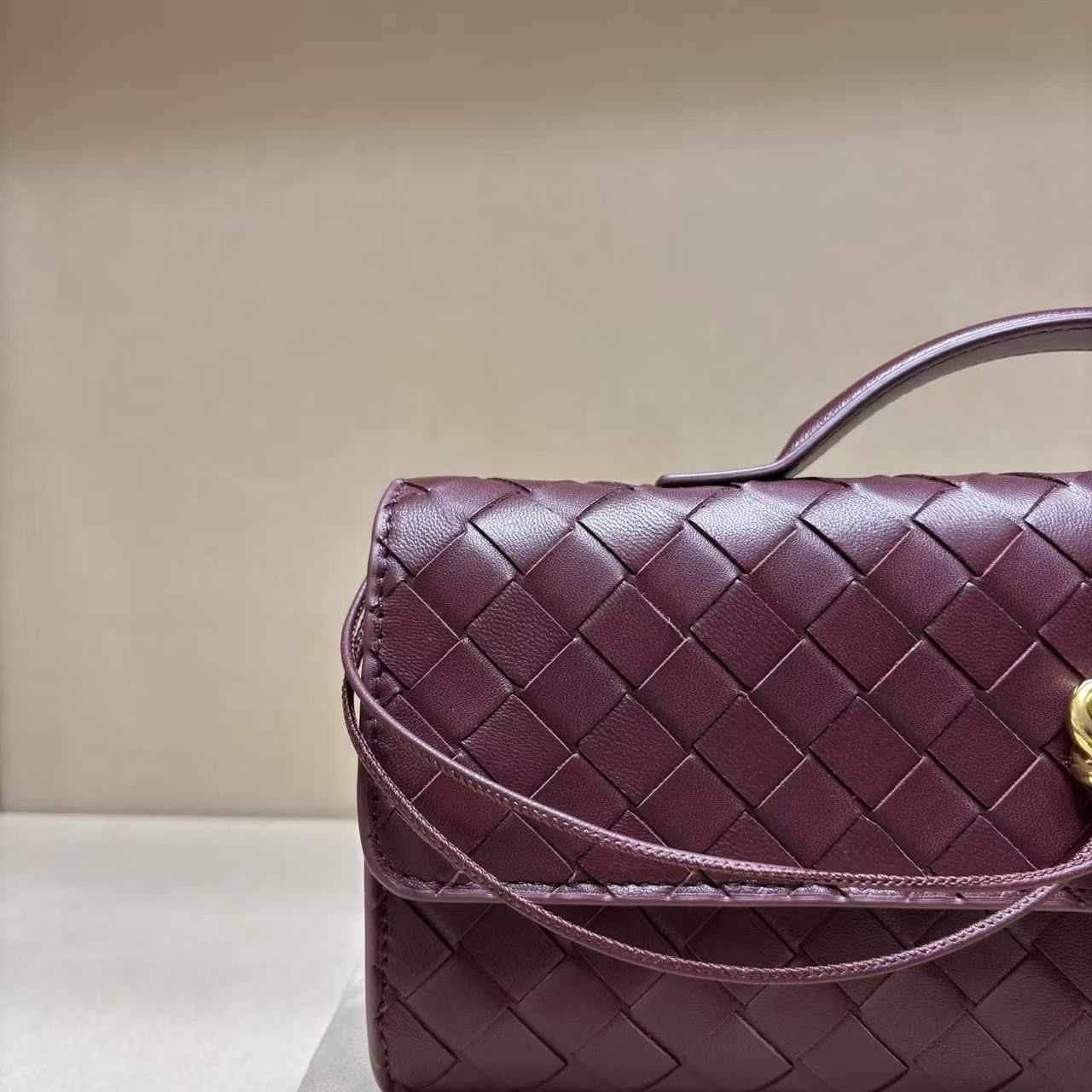 • Intrecciato leather top handle clutch with metallic knot closure